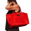 Anastasia es una cartera en un cuero único con trama cocodrilo, color rojo fuerte en un cuero agamuzado de muy fina textura.