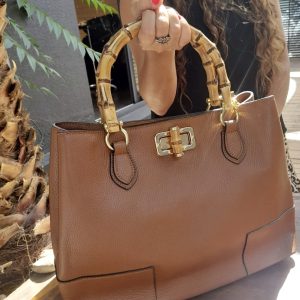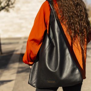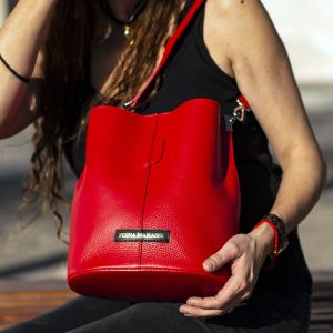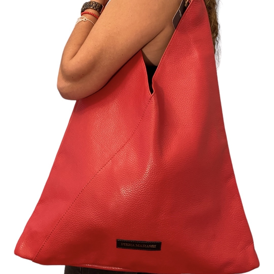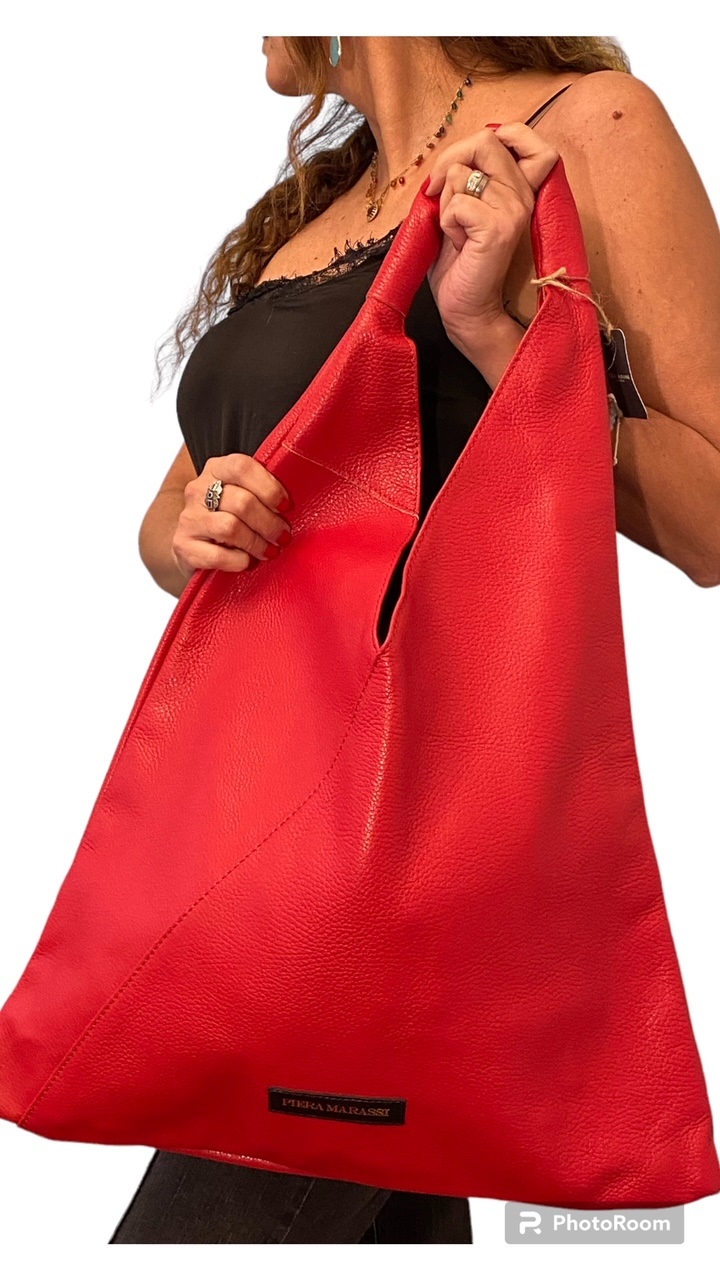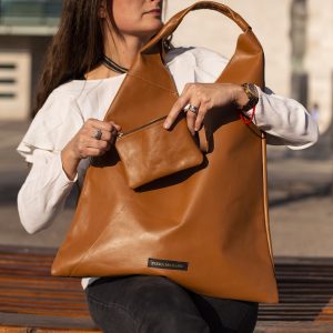 Roberta es una cartera única en su estilo innovador, atrae miradas por donde pasa! Tiene una gran capacidad, sus medidas son 64 x 44 cm, 100% cuero natural, bolsillo interior con cierre.